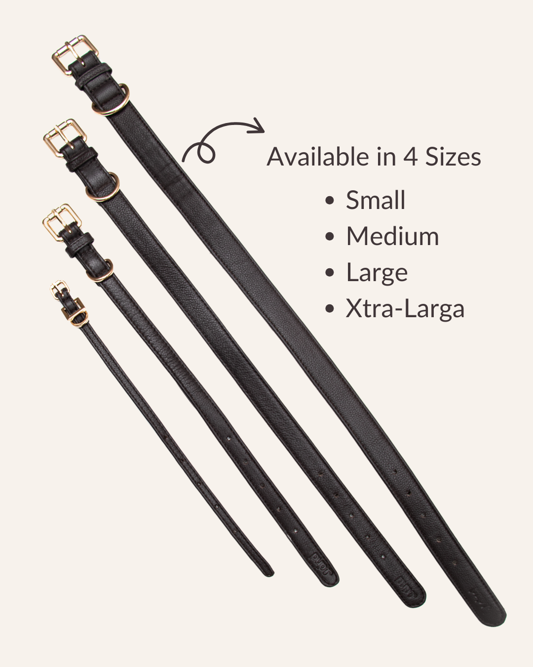 Indulge your furry friend with the epitome of canine elegance. Each collar is individually curated by expert craftsmen, ensuring a perfect blend of style and function. Soft and supple, yet sturdy and reliable, these collars are beautifully stitched with leather on both sides and a soft filling for comfort and double-layered strength. Adorned with exquisite golden hardware, these collars are meticulously crafted from premium leather, ensuring a comfortable and luxurious experience for your beloved pet. A timeless accessory that reflects your discerning taste and your dog’s individuality.