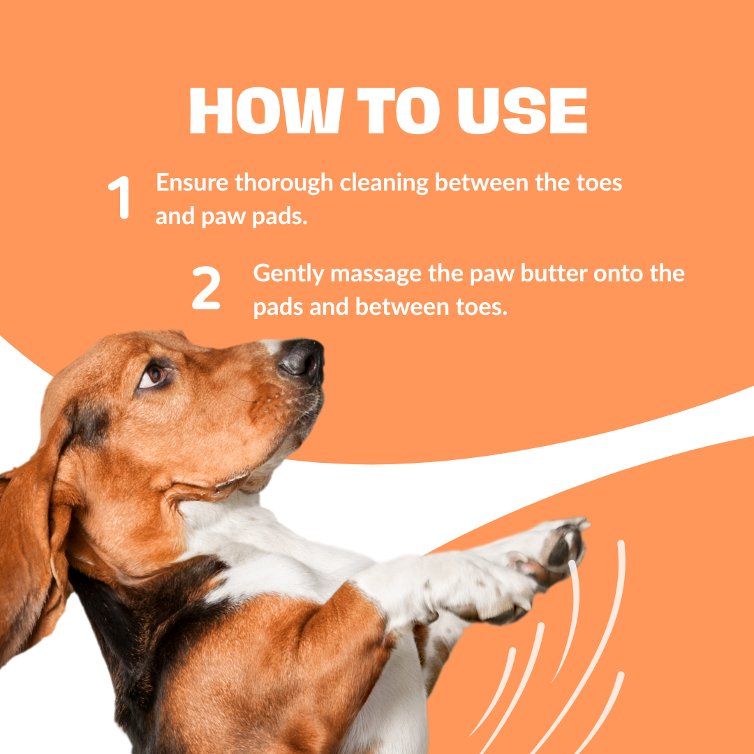 * Gently massage paw butter onto paw pads and between toes.
