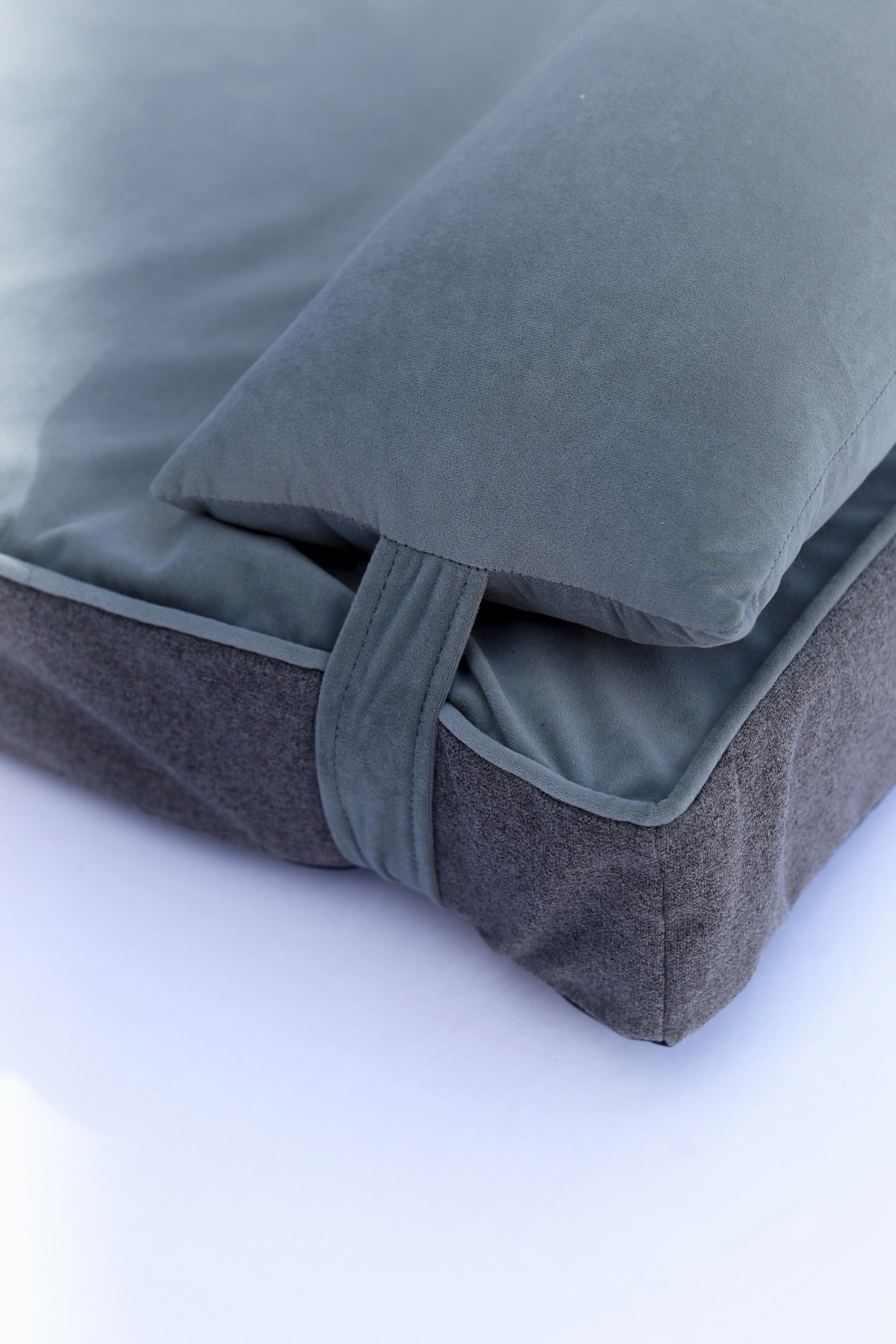 Elevate Your Dog’s Comfort with Our Luxurious Pillow Crafted with meticulous care, our hand stitched navy and gray pillows offer unparalleled comfort and support for your furry friend. The soft, plush fabric and ergonomic design promote healthy sleep posture, ensuring restful nights and rejuvenating mornings. Available in two sizes medium and large to suit dogs of all breeds, these pillows are the perfect addition to any dog bed or crate.